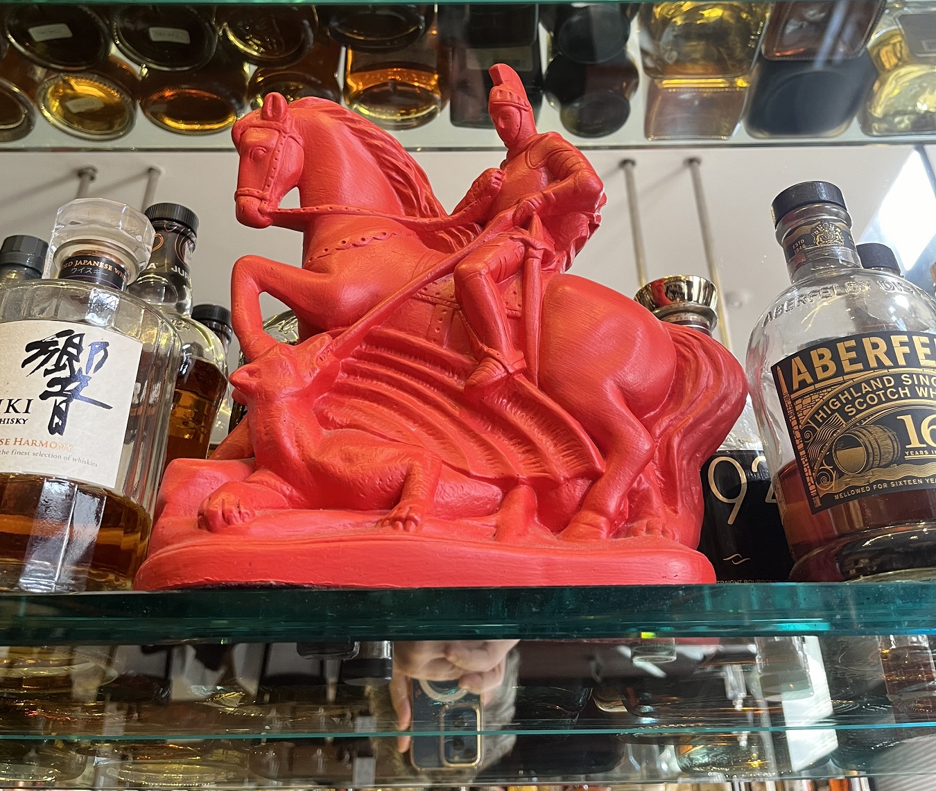 Essa semana resolvemos fazer a nossa celebração a São Jorge, Padroeiro dessa Cidade Maravilhosa de São Sebastião do Rio de Janeiro. Salve, Jorge! Guerreiro e Protetor. No nosso bar, como é tradição nos botequins da cidade, temos uma imagem de São Jorge – presente do querido amigo Chicô Gouvêa, nosso arquiteto, responsável pelas nossas últimas reformas, e pelo projeto do nosso novo salão, que celebra Copacabana e o samba, e praia e as cores do Rio.